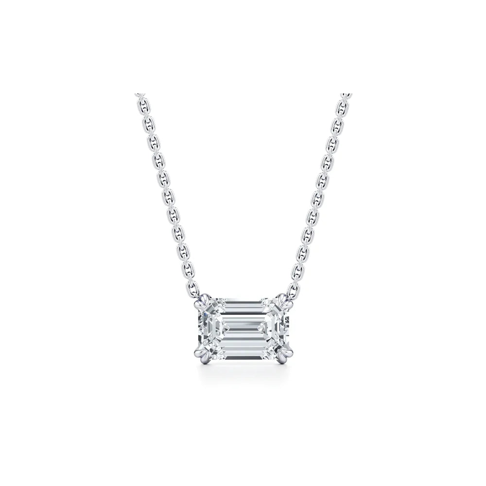 Emerald cut solitaire diamond necklace