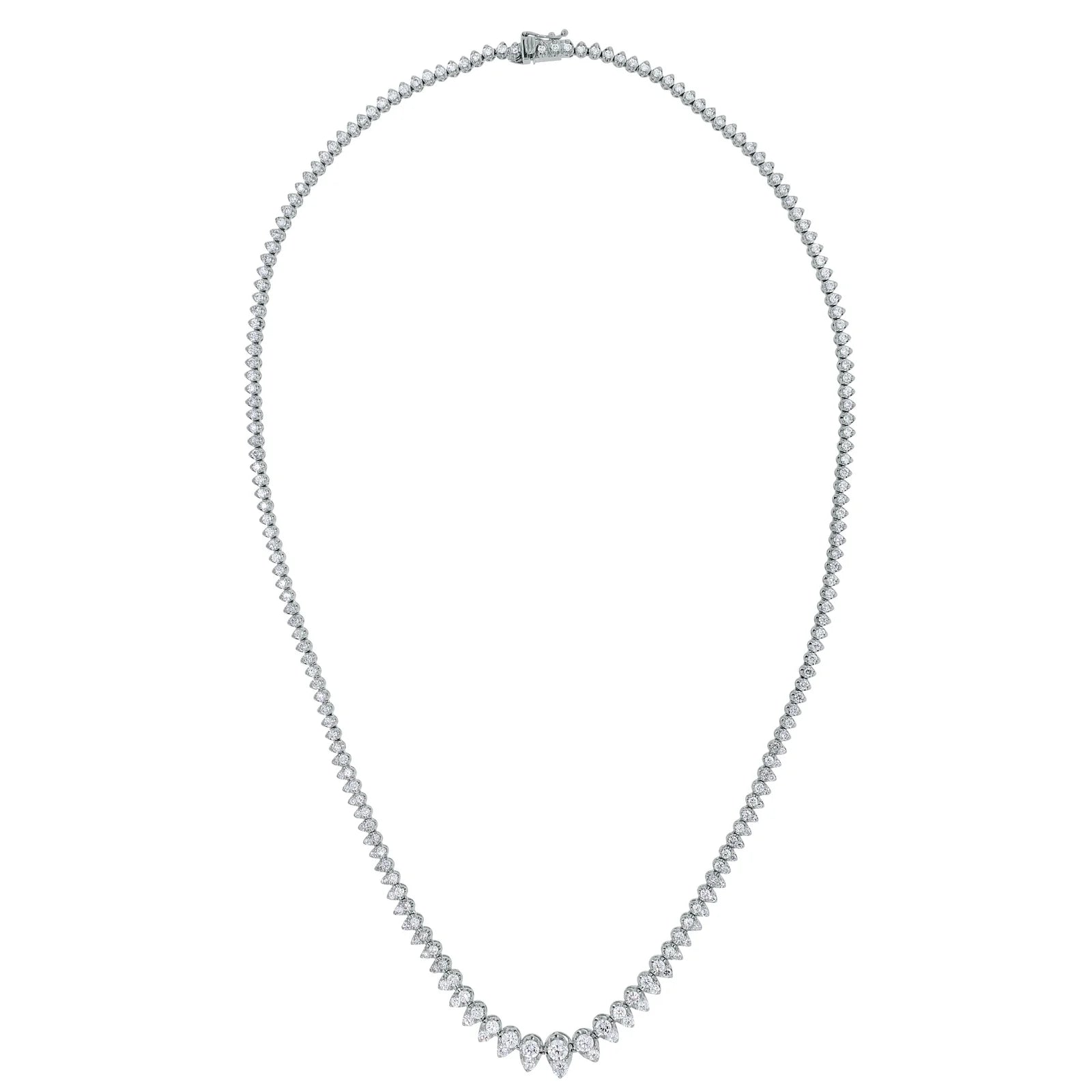 Elevate your elegance with the PearDiamond Tennis Necklace, meticulously crafted to feature perfectly matched pear-shaped diamonds arranged in a continuous, shimmering line. This necklace offers refined sophistication and versatility, making it an ideal choice for both formal occasions and everyday luxury. Its expert design ensures a secure fit and brilliant sparkle, highlighting the unique beauty of each diamond for a timeless statement piece.